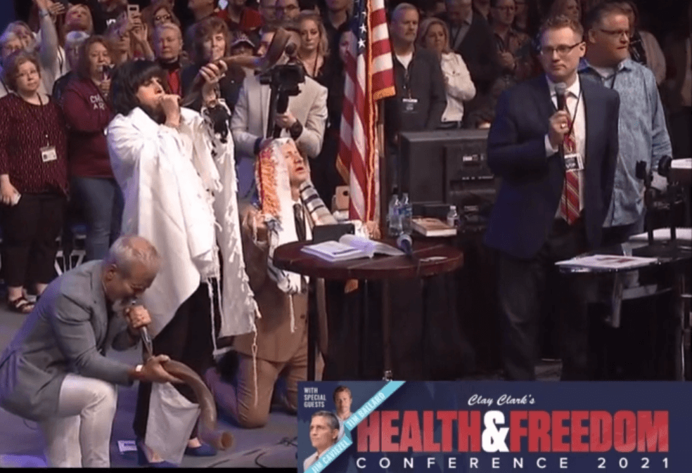 The opening prayer at Clay Clark’s Health & Freedom Conference in Tulsa, Oklahoma in April 2021. Source: Rumble